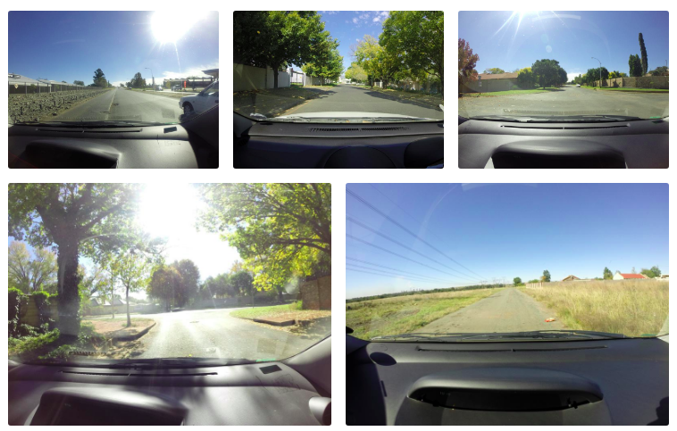 Train and test data were collected on different days, and at first glance it looks like this will be a tough challenge! It looks like the camera is sometimes at different angles (maybe to get a better view of potholes) and the lighting changes from pic to pic.