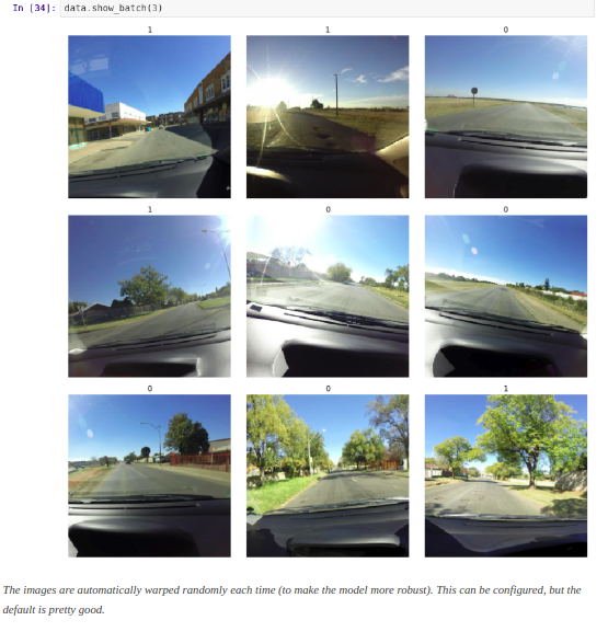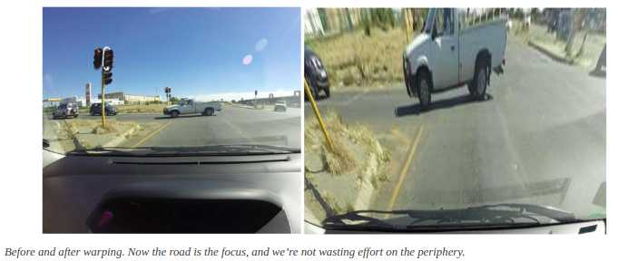 As the day kicked off, I dropped a few hints about taking a look at the images themselves and seeing how one could get rid of unnecessary information. An obvious answer would be to crop the images a little – there aren’t potholes in the dashboard or the sky! I don’t think anyone tried it, so let’s give it a go now and see where we get. One StackOverflow page later, I had code to crop and warp an image: