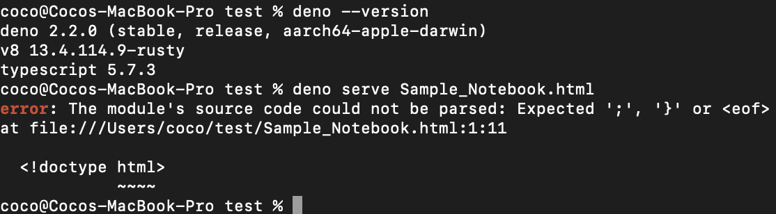 After following the tutorial, I used Deno 2.2 to generate the notebook.html. However, I used Chrome browser to open this html, the page is empty. The same thing happened to Sample_notebook.html.