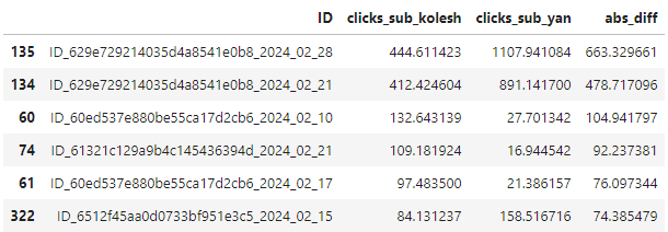 Here's the most interesting finding: I looked at your submission and only changed the prediction for ID_629e729214035d4a8541e0b8_2024_02_28 from 444 (your original value) to 1107 (my model prediction). All other predictions remained the same. This resulted in: