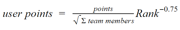 We are changing the way we give out points for each competition, to make sure that you get rewarded for all your hard work, even if you don’t place in the top 10. As of 18 March 2021, participation in any points or prize competition will be rewarded, based on the following function (note that all members of a team will receive the same number of points).