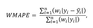 The private leaderboard scores of your two chosen submissions, will be overwritten with your WMAPE scores, so remember to select your two best submissions before the deadline.