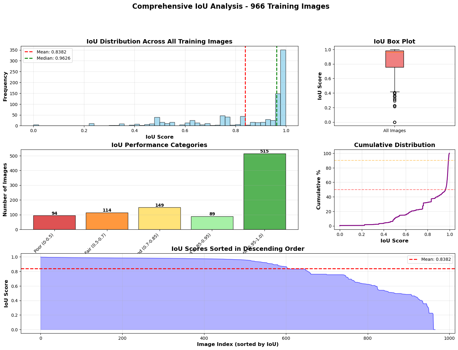 i totally agree with you because i did the same thing i infere on training data and the mask perfectly fit the polygons but evaluating the iou between predicted masks and ground truth gives you low iou