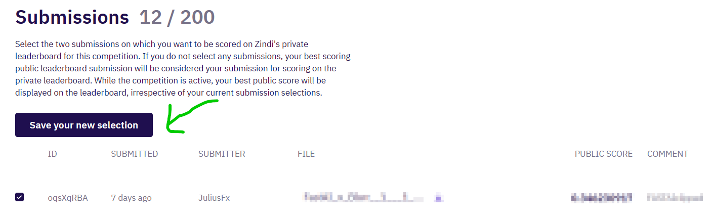 Yesterday, the challenge was finalized, where we had to select runs to submit. Logically, I selected my two submissions with the best scores on the public dataset (I had the confirmation message and saw them selected!). Upon checking this morning, I realized that the selected submissions are among the last ones. I should be 1st of the challenge. This is my first time on @Zindi, I worked a lot on this challenge. Can you please do something about it @Zindi? I am really confused.