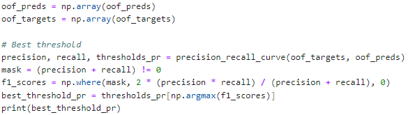 - I applied an optimal threshold for all folds rather than a unique threshold for each fold