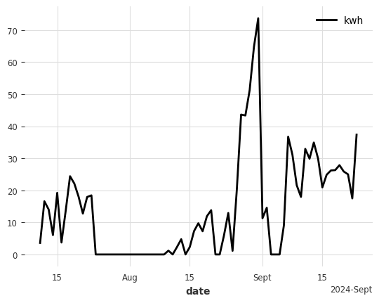 Now, given that we have devices that are mega producers, the small producers probably throw your models off, because they basically produce nothing and have low correlations with weather data... The other item that I notice is downtime in the mega producers, look at the August period, all of a sudden the device produces nothing - thus throwing off your usual correlations with weather data and even auto-correlation.