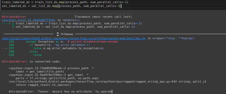 there is a problem with this code , when i try to map val_list_ds/test_list_ds it tells me "Tensor' object has no attribute 'to_sparse' "