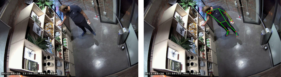On the left, you can see a picture of Cape AI’s CEO, Pieter Boon, performing a take action at the Wellness Warehouse Moonshop at Ideas Cartel. On the right, you can see the same image after the Pose Estimation model has estimated the key points on Pieter’s body.