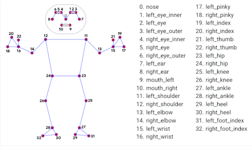 The dataset for this competition contains the vectors of key point coordinates that were estimated using the BlazePose GHUM 3D model. Each vector represents the position of points on a shopper’s body in a particular frame of their shopping session. If the model could not estimate the key point’s location with high confidence, [0.0, 0.0] was used as a missing value for that key point’s location.