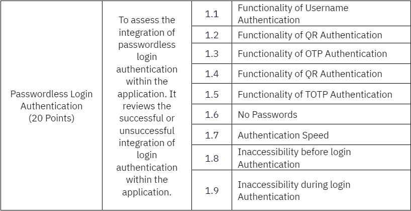 Note: Participants are permitted to integrate passwordless access control authentication into additional functions of the application; however, adherence to the above list of functions is mandatory.