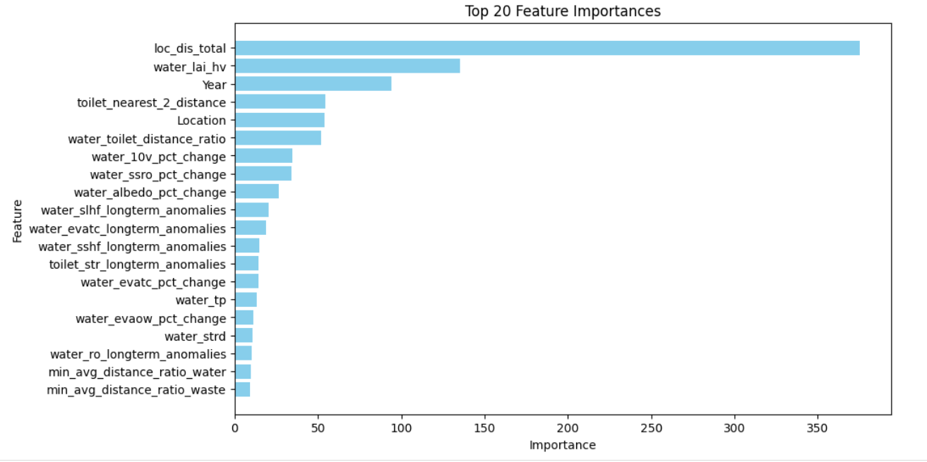 - Used distances from the 3 nearest points from the location to create features such as Closest distance to water, toilet, and waste facilities of a certain location