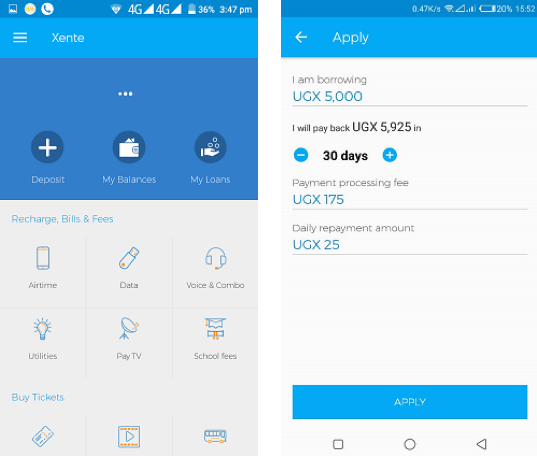 Xente is a Ugandan e-commerce startup that makes it easy for consumers to make payments, get loans, and shop using simply a mobile phone. Using the Xente app you can access personal loans of from UGX 500 – UGX 3,000,000.* The funds can be deposited into your Xente wallet, and then transferred into your Xente Visa card, mobile money wallet, or bank account. You can make transactions using the app using your mobile money or bank card.Alternatively, you can use the funds to buy any product or service in the Xente app. Xente also has a “Buy Now & Pay Later” option, for products such as airtime and data, bill payments, utilities, movies, and bus tickets.**