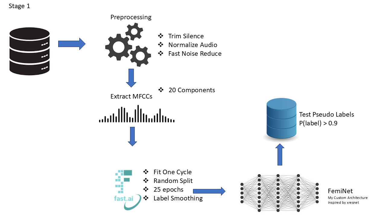 Noise removal was a gem. It boosted my CV drastically, unfortunately, it was too slow to meet up with the time constraints for the inference, so I switched to a faster method by reducing n_fft and hop_length, but it still didn't cut it. Eventually I had to find a way not to use it at all for the modelling hence the need for using pseudo labels and completely abandon the noise removal.