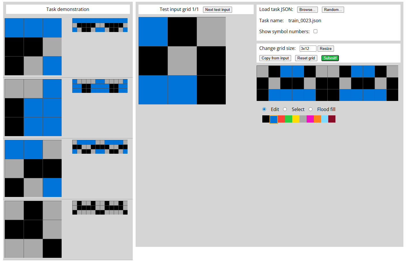The primary objective of this competition is to develop a machine learning model that can successfully generalize from a small number of examples to solve abstract reasoning tasks. Specifically, your model should be able to: