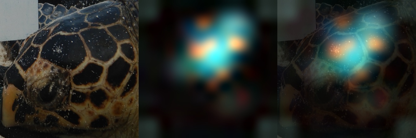 I made visualisation of places where most activuty happens during turtle analysis by neural net. It was made for 2 different nets. One is DenseNet121, other is EfficientNetB5. It was made for fun. I liked how it looks and decided to share. )