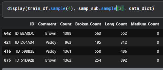 Color Counts sum up to Counts. However there are some rows that don't. There might be a normal rice count since most color counts are defects.
