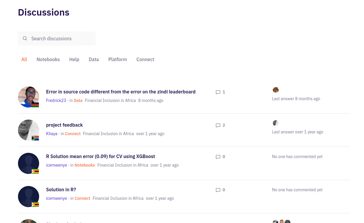The discussion board is very active and full of knowledgeable and helpful African data scientists willing to assist you.