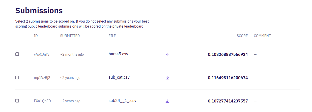 Each competition has its own evaluation metric that will be used to evaluate your results and rank you on the leaderboard. It also shows how you should prepare your submission file before uploading your file on the platform.