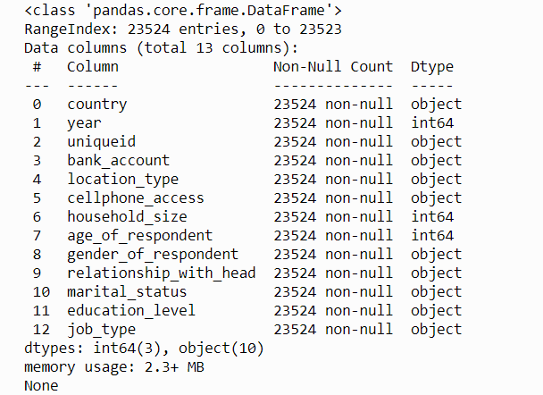 We won’t go further on understanding the dataset because Davis has already published an article about exploratory data analysis (EDA) with the financial Inclusion in Africa dataset. You can read and download the notebook for EDA in the link below.