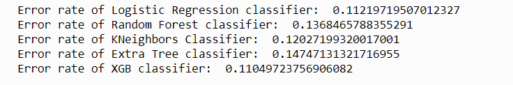 print("Error rate of the XGB classifier: ", 1 - accuracy_score(y_val, y_pred))