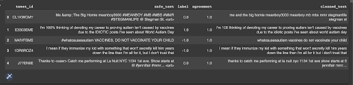 We can see that we have four columns. The two most important columns for us include the safe_textcolumn and the label column. The label column is what we are trying to predict given the safe text.