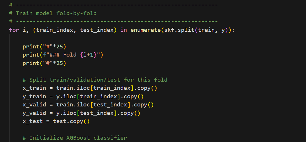 The goal wasn’t to squeeze out a perfect score on any one fold, but to build a model that behaved consistently and held up across every fold. Each split served as a miniature stress test: for every fold, I trained a fresh model on a different slice of the data to see whether its performance stayed stable rather than lucky.