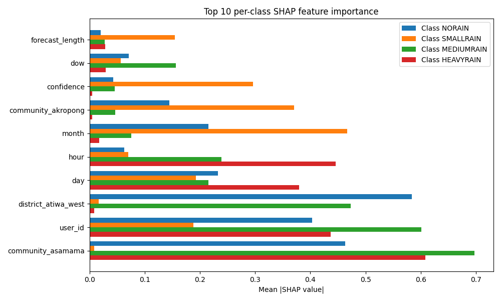 Forecasting rainfall intensity from farmer-reported observations may sound simple—until you realize just how noisy, imbalanced, and region-dependent the data can be. For the Ghana’s Indigenous Intel Challenge, the mission was to classify rainfall into four categories—No Rain, Small Rain, Medium Rain, and Heavy Rain.Turning farmer-reported weather observations into reliable rainfall forecasts is a deceptively simple idea with the power to reshape agriculture. In the Zindi