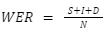 WER is calculated as follows,